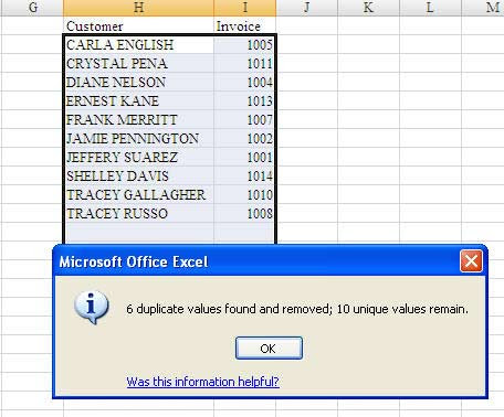 As you can see, there are many methods for dealing with duplicates. Excel 2007 adds two new tools to your arsenal.
